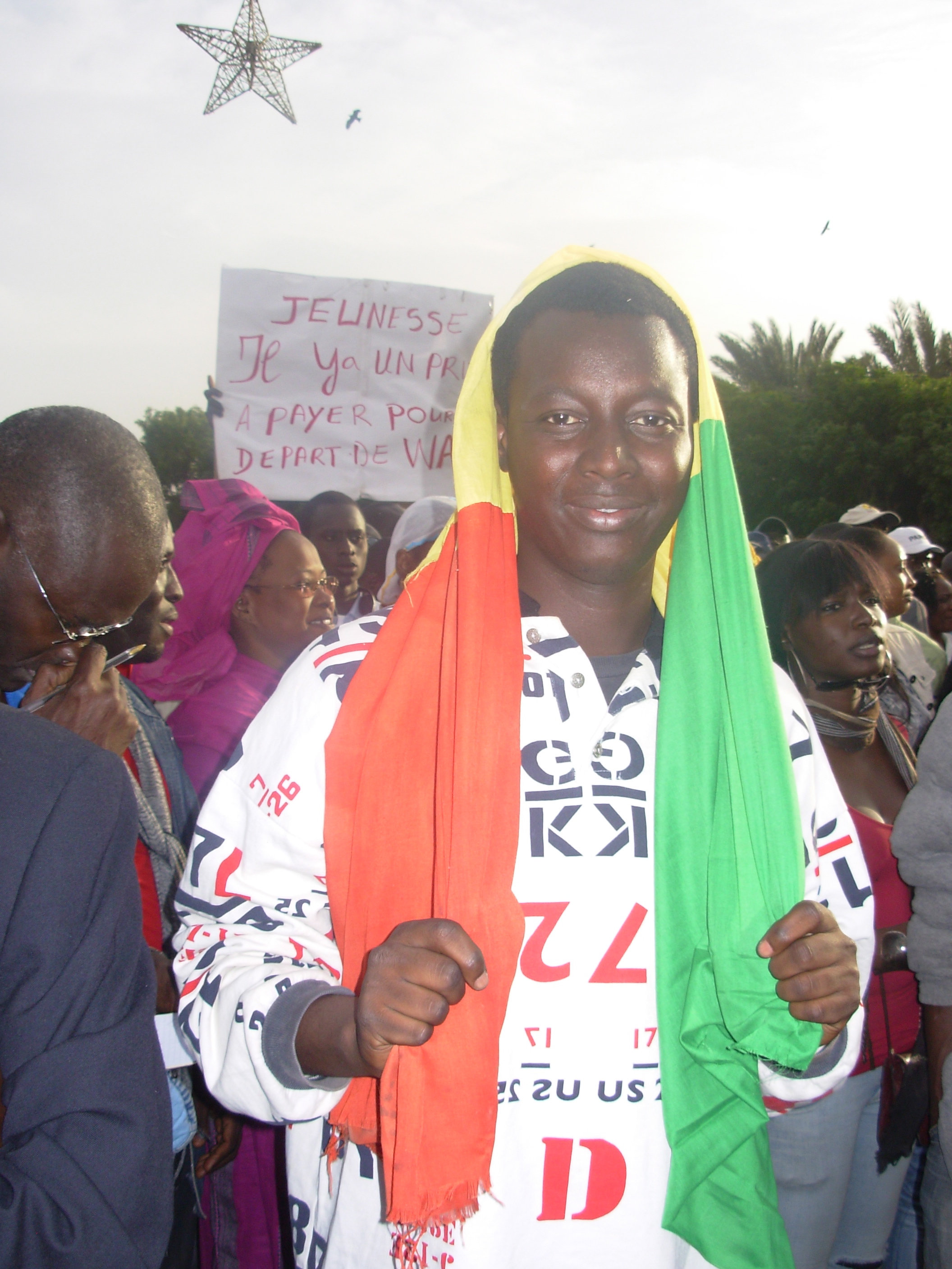 It was early evening when we got there and already there were hoards of media and people gathered in and around the main “obelisque” square, people of all ages and backgrounds, waving flags, holding signs with slogans like “Young people, there’s a price to pay for Wade’s departure” and “Wade, get lost” scrawled across. In true Senegalese fashion there was a lot of singing and rhythmic music blasting from the loud speakers. Peanut and juice sellers were making their rounds through the masses. For a brief moment I almost felt like I was at a Sunday afternoon sporting event, rather than a heated political protest. Honestly, it’s hard to imagine the Senegalese getting wholeheartedly involved in something to the point that they actually come out to protest. It’s simply not in their culture. They are pacifist by nature, and many quite fatalist to an extreme. But all that will have to change if this country is going to move forward. And soon before the moment passes.